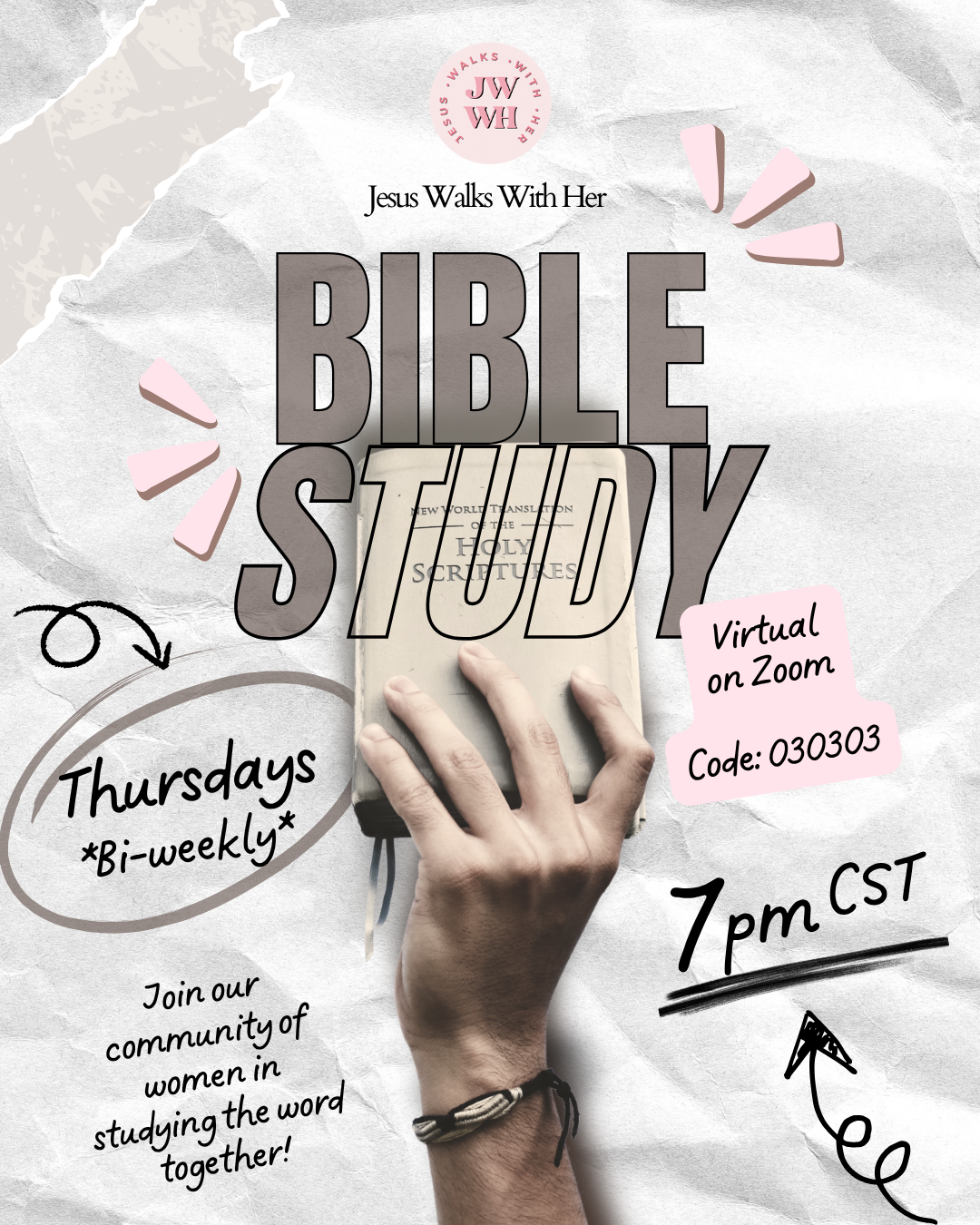 Join us bi-weekly on Thursday evenings @ 7pm CST for our virtual women’s Bible study — a safe, Spirit-led space for women who desire to grow deeper in Christ and study the Word in community. Zoom Code: 030303